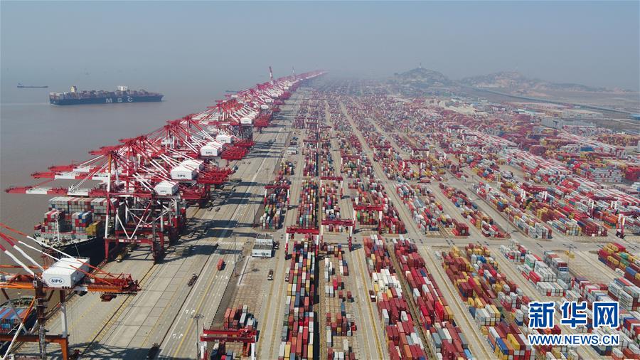 这是3月18日拍摄的上海洋山港集装箱码头(无人机照片)。新华社记者 丁汀 摄