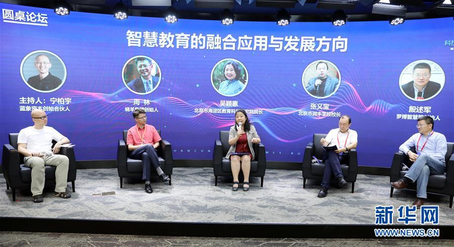 8月25日,嘉宾在“智慧教育的融合应用与发展方向”圆桌对话中交流。 新华社记者 刘莲芬 摄