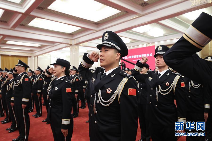 8月26日,参加授旗仪式的人民警察进行集体宣誓。新华社记者 鞠鹏 摄