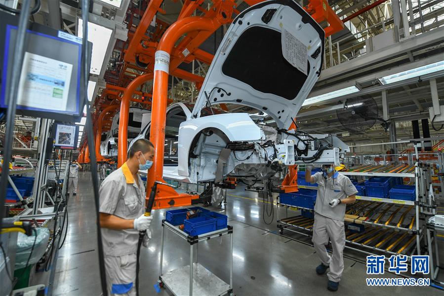 8月10日,在一汽-大众长春基地总装车间,工人在装配车辆。新华社记者 张楠 摄