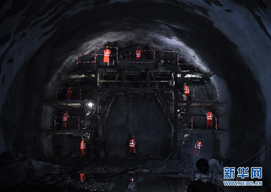 8月29日,中铁十二局集团施工人员在广东大丰华高速公路控制性工程鸿图特长隧道进行掘进作业。 目前,广东大丰华(大埔-丰顺-五华)高速公路各项施工进展顺利,由中铁十二局集团负责施工的大丰华高速控制性工程鸿图特长隧道正在加紧掘进施工。 新华社记者 邓华 摄