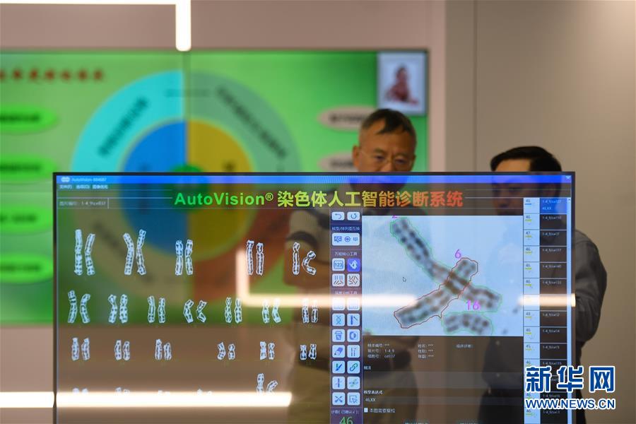 8月30日,在中国(杭州)数字·健康小镇的成果转化区,嘉宾在了解一套染色体人工智能诊断系统。 当日,浙江省杭州市余杭区未来科技城举办2020生命健康未来峰会暨中国(杭州)数字·健康小镇开园仪式。 小镇重点布局基于人工智能、5G、区块链等技术赋能的生命健康产业,规划面积3.2平方公里,此次开园的小镇启动区块共10栋建筑,包含小镇客厅、企业研发总部、成果转化区、商业配套等。 新华社记者 黄宗治 摄