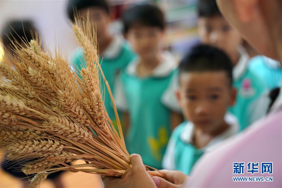 9月1日,河北省邢台市襄都区第二幼儿园的孩子们学习辨认农作物。 开学伊始,不少学校、幼儿园开展“节约粮食 杜绝浪费”为主题的开学第一课,帮助孩子们认识粮食的重要性,从小树立爱粮、惜粮、节粮的意识。 新华社记者 牟宇 摄