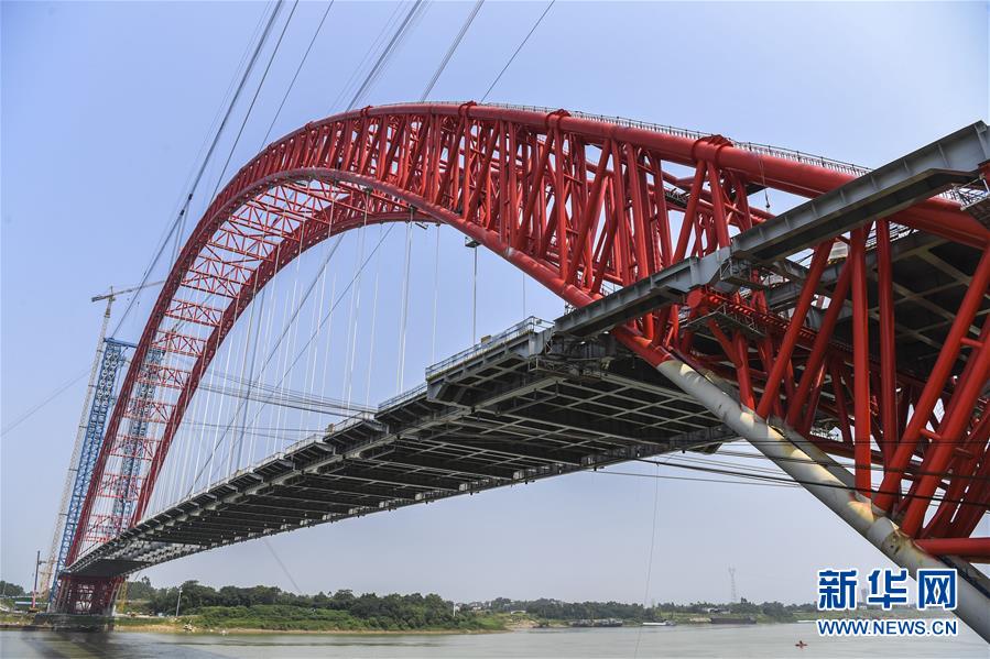 这是9月1日拍摄的广西平南三桥。 当日,广西平南三桥桥面格子梁顺利实现合龙。至此,大桥的主体钢结构全部安装完成,主桥实现贯通。 平南三桥位于广西贵港市平南县,是荔玉高速平南北互通连接线上跨越浔江的一座特大桥。大桥于2018年6月开工建设,全长1035米,主桥跨径575米,预计2020年12月底建成通车。 新华社记者 曹祎铭 摄