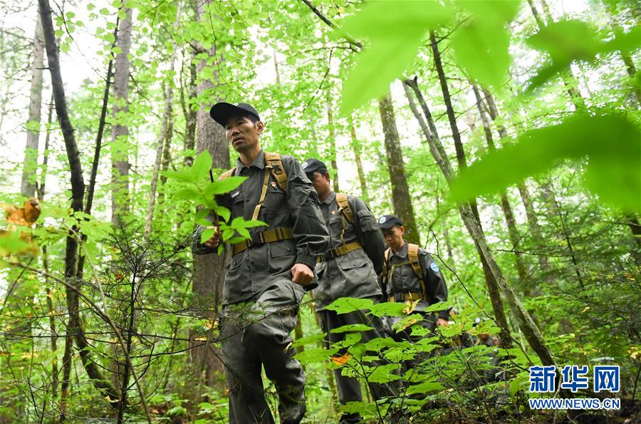 9月2日,巡护员行走在吉林长白山国家级自然保护区的森林里。 吉林长白山国家级自然保护区维东自然保护站负责管区面积33720公顷,目前有90人,巡护员们经常在森林里步行,在野外露营地值守,守护着长白山的一草一木。 新华社记者 颜麟蕴 摄
