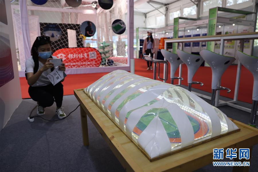 9月2日,记者在展览现场拍照。 2020年中国国际服务贸易交易会将于9月4日-9日在北京国家会议中心召开。目前,会场进入最后的准备阶段,静待开幕。 新华社记者 邢广利 摄