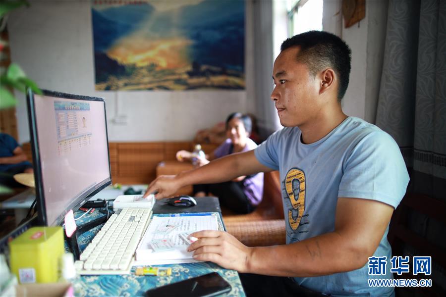 9月3日,加榜乡党扭村村民王世明在自家客栈内为客人登记。王世明今年24岁,苗族,2016年从浙江温州返乡,利用自家房屋开了一家客栈,目前每年有6万元左右的收入。 贵州省黔东南苗族侗族自治州从江县加榜乡以美丽的梯田景观闻名,但同时也是贫困乡镇。近年来当地大力发展乡村旅游,不少外出打工的人纷纷选择回到家乡从事旅游相关产业,通过勤劳的双手在“家门口”走上致富路。 新华社记者 刘续 摄