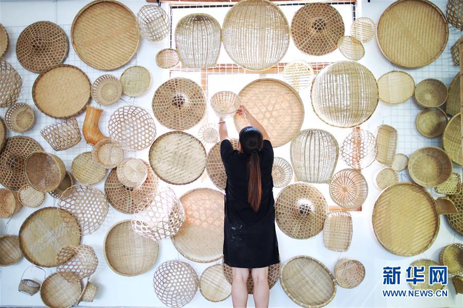 9月3日,加榜乡加榜村村民莫艳翠在整理竹编工艺品展示区。莫艳翠今年43岁,壮族,2014年从广西回乡创业,创办了从江县加榜民间竹编工艺专业合作社,带动当地30多人就业。 贵州省黔东南苗族侗族自治州从江县加榜乡以美丽的梯田景观闻名,但同时也是贫困乡镇。近年来当地大力发展乡村旅游,不少外出打工的人纷纷选择回到家乡从事旅游相关产业,通过勤劳的双手在“家门口”走上致富路。 新华社记者 刘续 摄