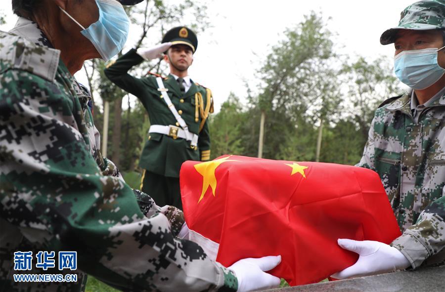 9月3日拍摄的烈士骨灰安葬启动仪式现场。 当日是中国人民抗日战争暨世界反法西斯战争胜利75周年纪念日,甘肃省兰州市在市烈士陵园举行了烈士骨灰安葬启动仪式,烈士家属、部队官兵代表、参战老兵代表等社会各界人士共300余人参加了此次启动仪式。 新华社记者 张睿 摄