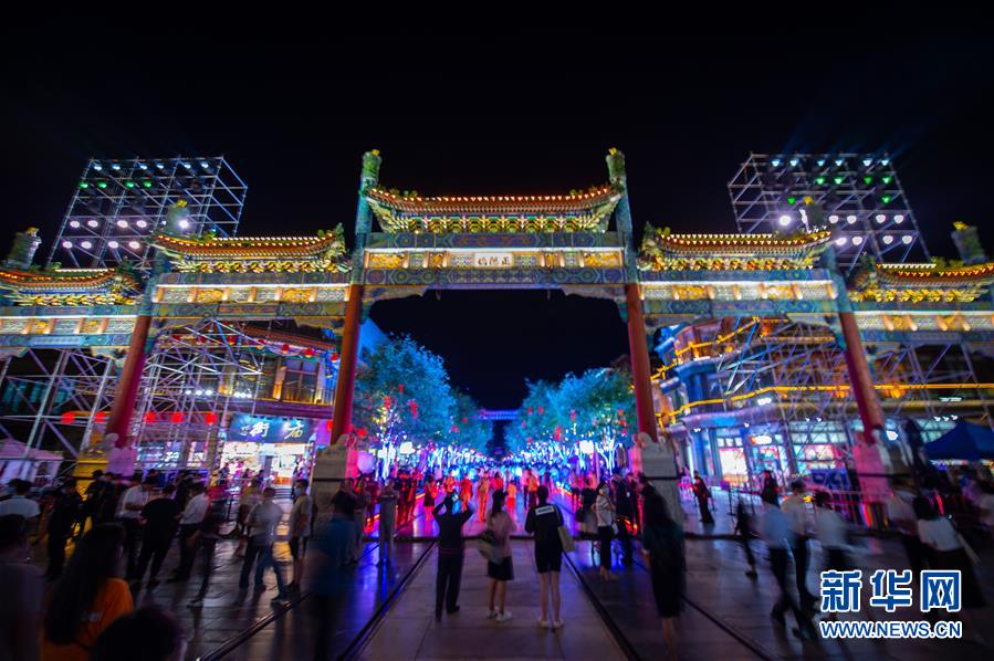 这是9月8日拍摄的北京前门步行街夜景。 当日,“2020年全国消费促进月暨北京时尚消费月”启动仪式在北京前门步行街举行。 新华社记者 陈钟昊 摄