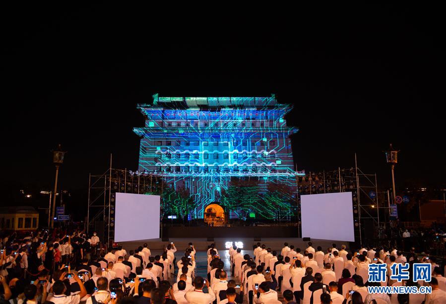 这是9月8日在启动仪式现场拍摄的灯光秀。 新华社记者 陈钟昊 摄