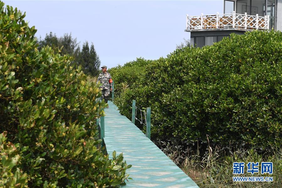 9月9日,管护员林发金在福建闽江河口湿地国家级自然保护区的红树林间巡护。 新华社记者 林善传 摄