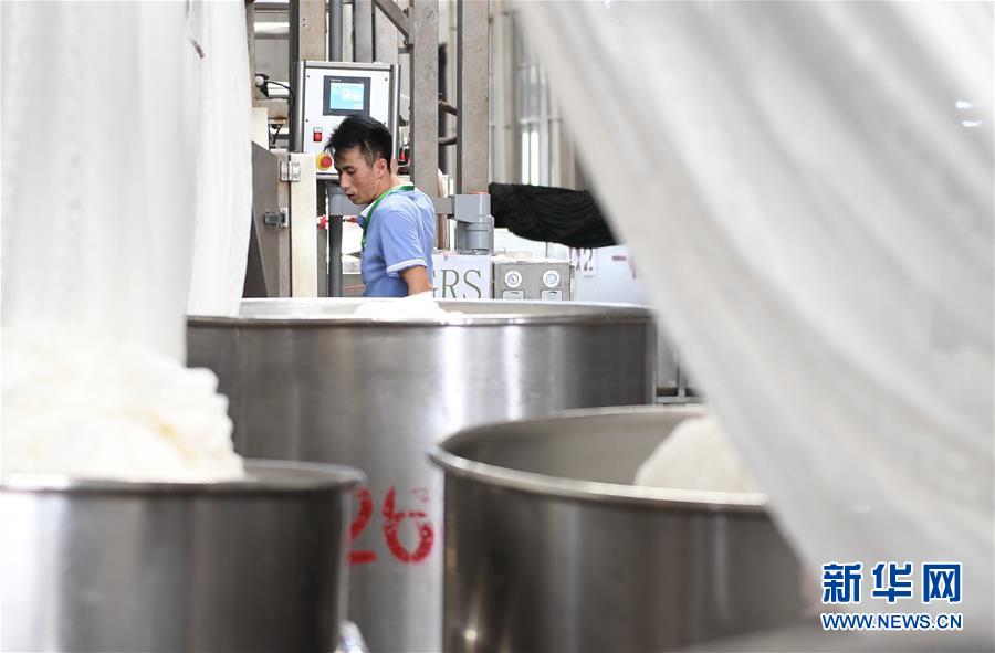 9月8日,来自定西的马伟刚在福建东龙针纺有限公司染整厂操作印染机器。新华社记者 林善传 摄