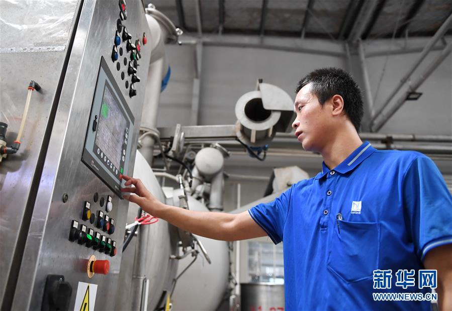 9月8日,来自定西的岳合明在福建东龙针纺有限公司操作染织机器。新华社记者 林善传 摄
