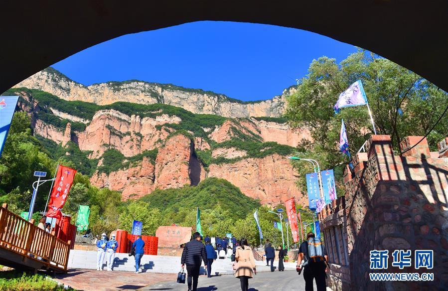 9月16日,在石家庄市赞皇县的嶂石岩景区,游客欣赏壮美的太行山。 随着文化与旅游不断深入融合,河北省石家庄市赞皇县以当地文化特色为支撑,深入挖掘丰富的文化资源和历史底蕴,将非遗民俗表演、实景剧演出等融入景区的规划设计、建设、环境场景提升中,提升游客的参与度和体验感。 新华社发(张晓峰 摄)
