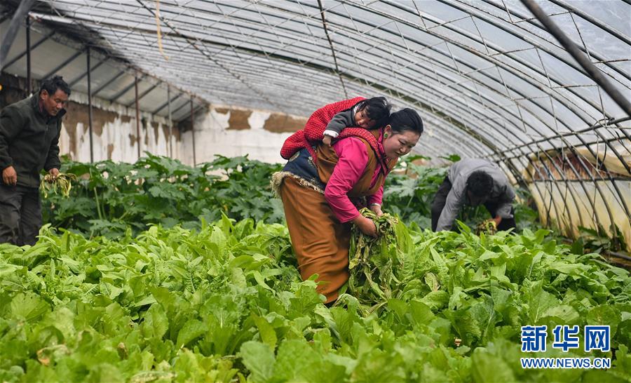 西藏昌都市左贡县亚中村投资修建了18座温室大棚,为村里的建档立卡贫困户提供了36个就业岗位,每人每年可增收5000元以上,大棚蔬菜种植成为助力村民脱贫的新途径。 新华社记者 晋美多吉 摄