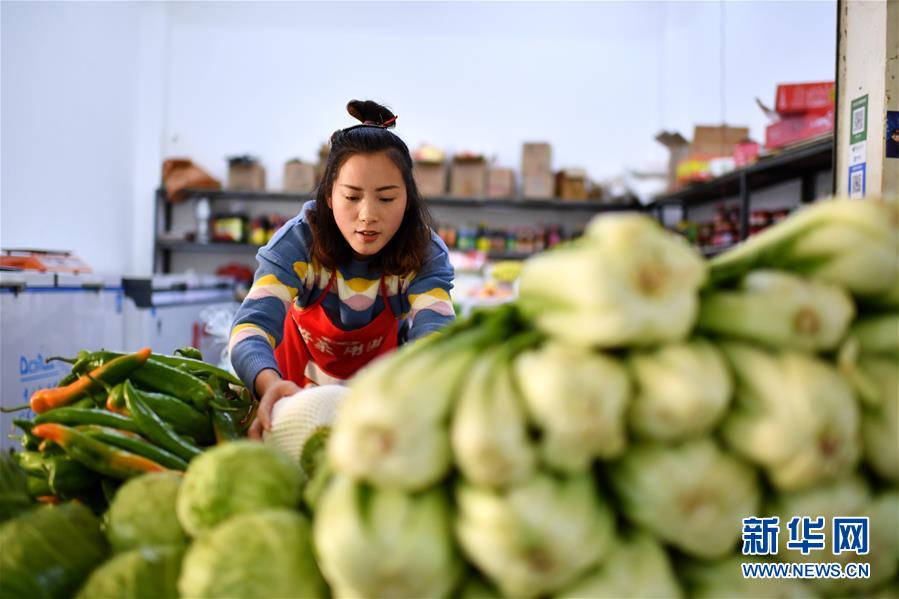 在西藏昌都市丁青县尺牍镇农贸市场,商贩在整理蔬菜(9月18日摄)。新华社记者 詹彦 摄
