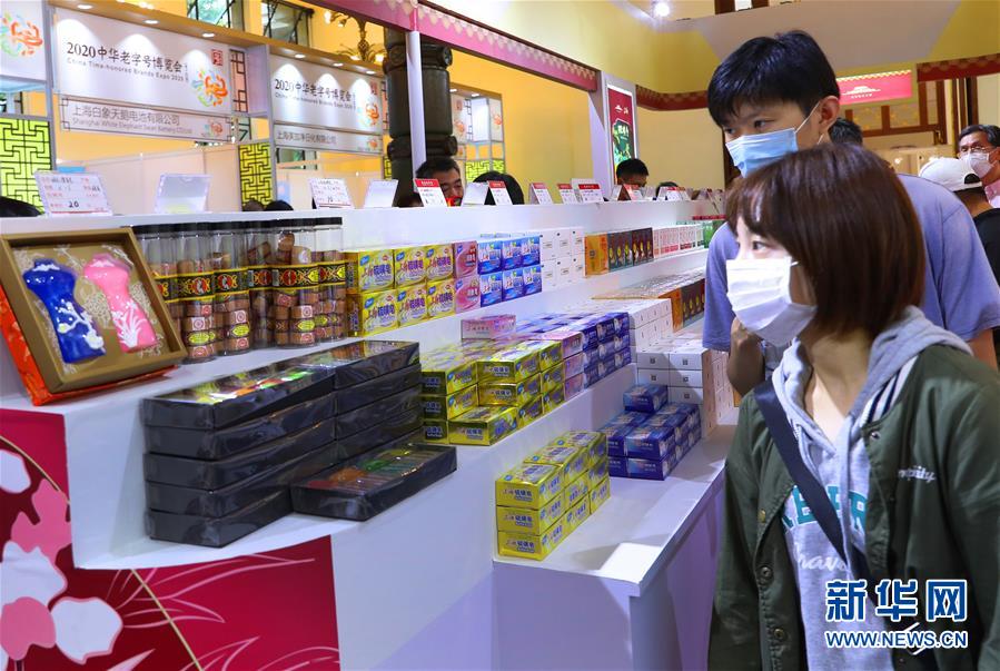 10月10日,两名年轻人在参观上海制皂有限公司展出的产品。 当日,2020中华老字号博览会在上海展览中心开幕。博览会汇聚全国220多家知名老字号品牌,吸引安徽、山东、广东、福建、江西等多地组团参展,展品范围涉及食品餐饮、轻工百货、服装鞋帽、珠宝首饰、家居用品、医药保健、品牌服务多个品类。众多老字号品牌呈现IP化、数字化和年轻化趋势,引领新国潮风尚。 新华社记者 方喆 摄
