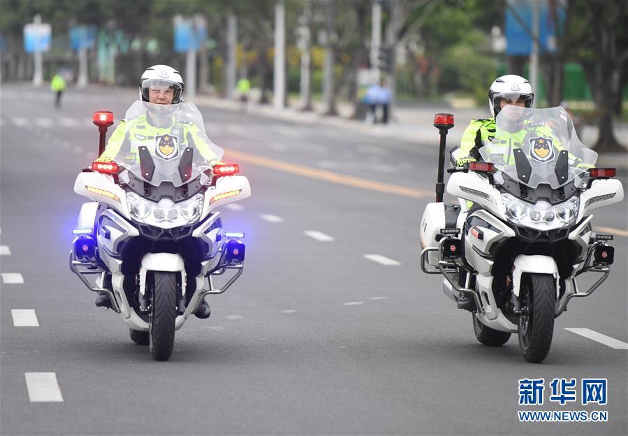 10月12日,在福建福州海峡国际会展中心附近,福州交警铁骑在巡逻。 新华社记者 宋为伟 摄