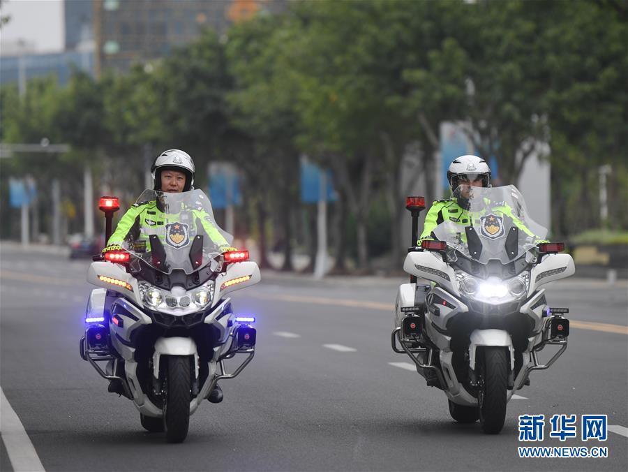 10月12日,在福建福州海峡国际会展中心附近,福州交警铁骑在巡逻。新华社记者 宋为伟 摄