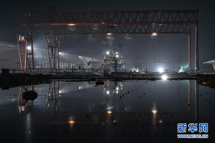 10月13日,中铁十一局常益长铁路望城西制梁场一片繁忙景象。 目前,常(德)益(阳)长(沙)铁路进入架梁高峰,承担制梁任务的中铁十一局桥梁公司的建设者们昼夜加班赶制,确保铁路桥梁如期架设。 常益长铁路全长157公里,设计时速350公里,是国家“八纵八横”高速铁路网的重要组成部分。 新华社发(王荃荃 摄)