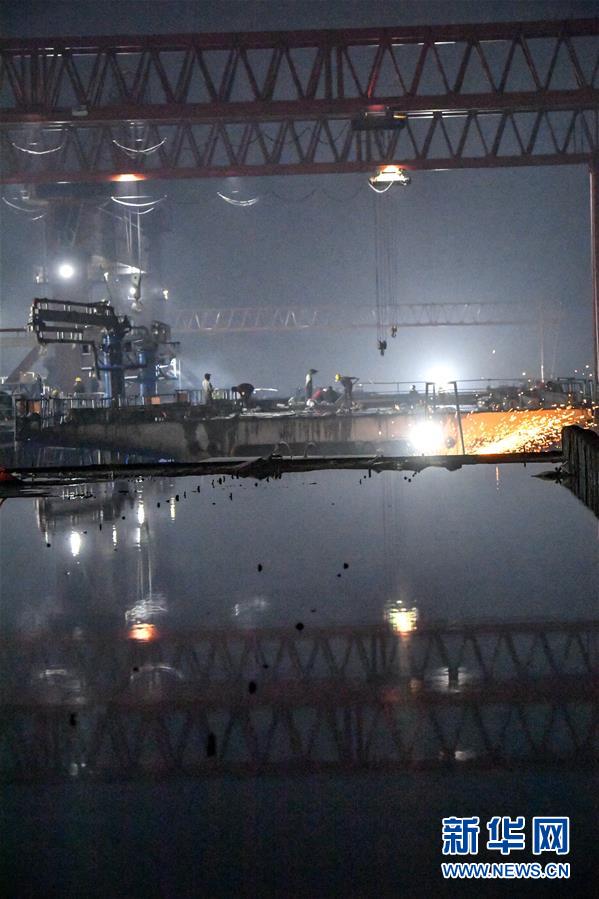 10月13日,中铁十一局常益长铁路望城西制梁场一片繁忙景象。 目前,常(德)益(阳)长(沙)铁路进入架梁高峰,承担制梁任务的中铁十一局桥梁公司的建设者们昼夜加班赶制,确保铁路桥梁如期架设。 常益长铁路全长157公里,设计时速350公里,是国家“八纵八横”高速铁路网的重要组成部分。 新华社发(王荃荃 摄)