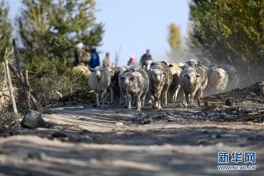 这是10月15日在肃南裕固族自治县明花乡拍摄的到达异地借牧终点玉米秸秆地的羊群。新华社记者 范培珅 摄