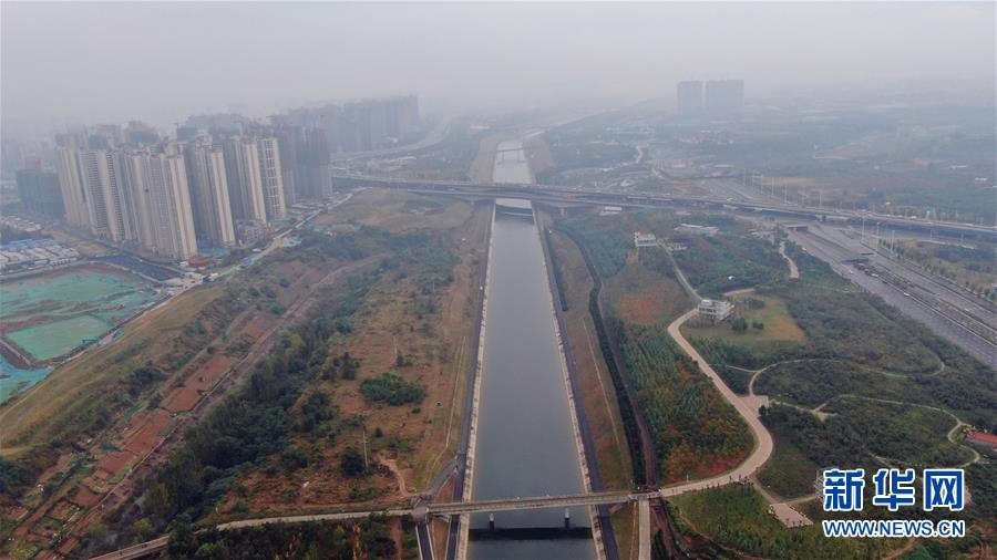 这是10月15日拍摄的南水北调中线郑州段干渠(无人机照片)。 新华社记者 刘诗平 摄