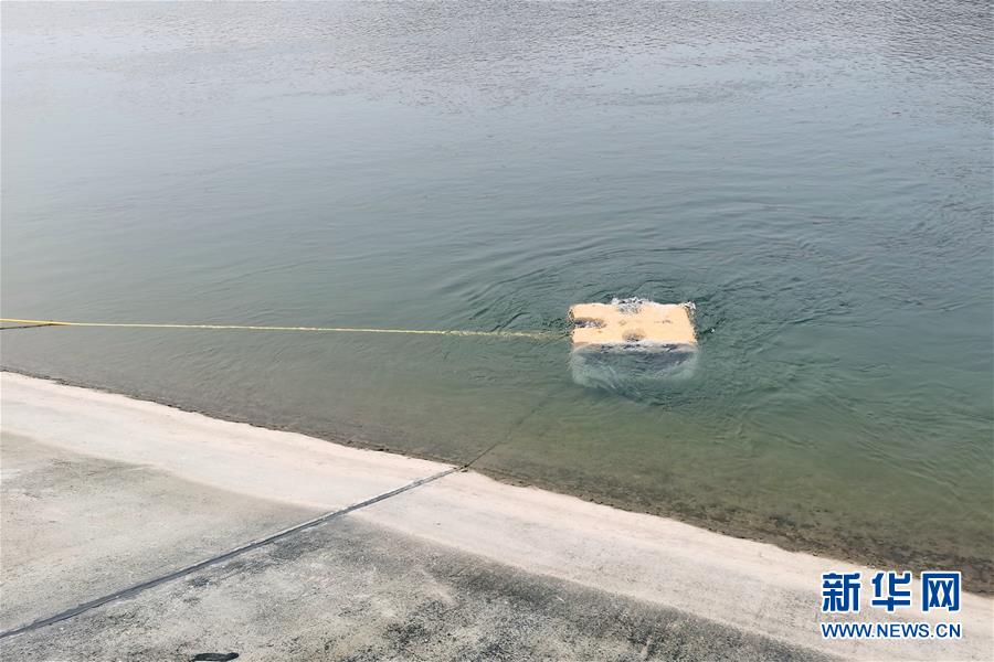 10月16日,在郑州举行的南水北调中线工程2020年度开放日活动现场,工作人员演示水下机器人作业(手机拍摄)。 新华社记者 刘诗平 摄