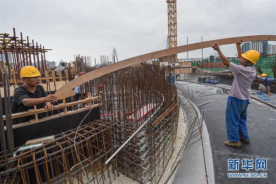 10月20日,工人在海口湾云洞图书馆项目工地施工。 近日,在位于海口市海口湾的云洞图书馆项目工地,工人们加紧施工。目前,该项目已进入地上主体结构施工阶段。项目建成后,云洞图书馆将成为海口湾标志性艺术建筑,并为市民、游客提供一处阅读和休憩的场所。 新华社记者 蒲晓旭 摄