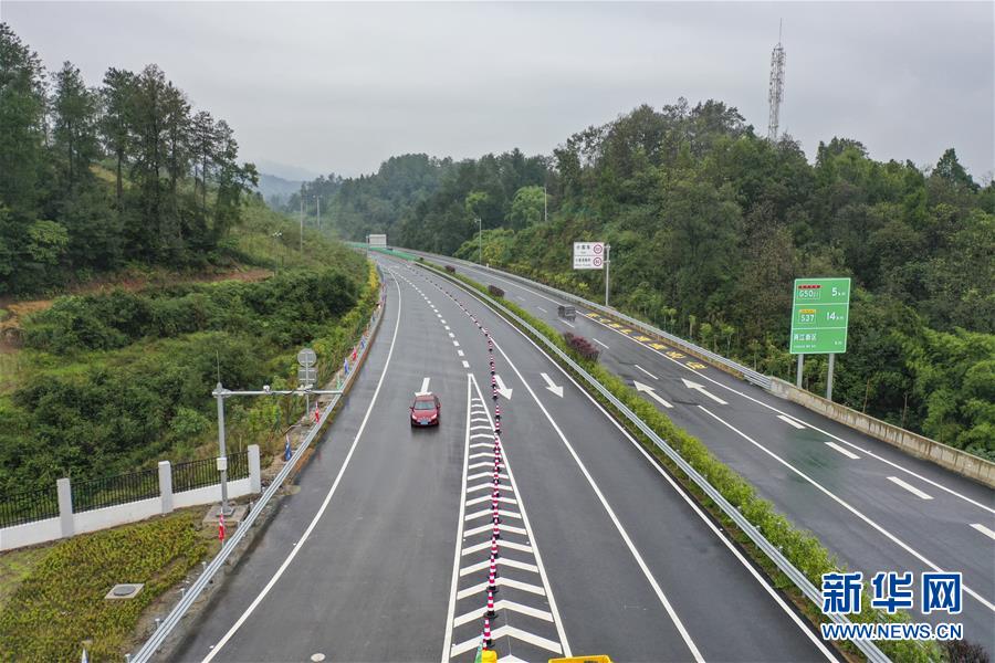 这是10月20日拍摄的重庆南两高速(无人机照片)。 当日,由贵州桥梁建设集团承建的重庆市南川区至两江新区高速公路(简称“南两高速”)正式通车(五台收费站以北约2.4公里暂不开通)。南两高速于2016年底开工建设,全长约77公里,途经南川、涪陵、巴南、渝北四个区县,是重庆市“交通建设三年行动计划”重要项目。 新华社记者 黄伟 摄