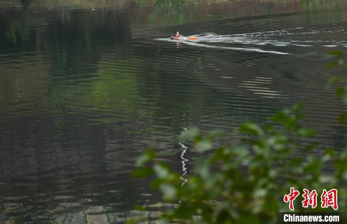 一市民正在江水中游泳。 陈超 摄