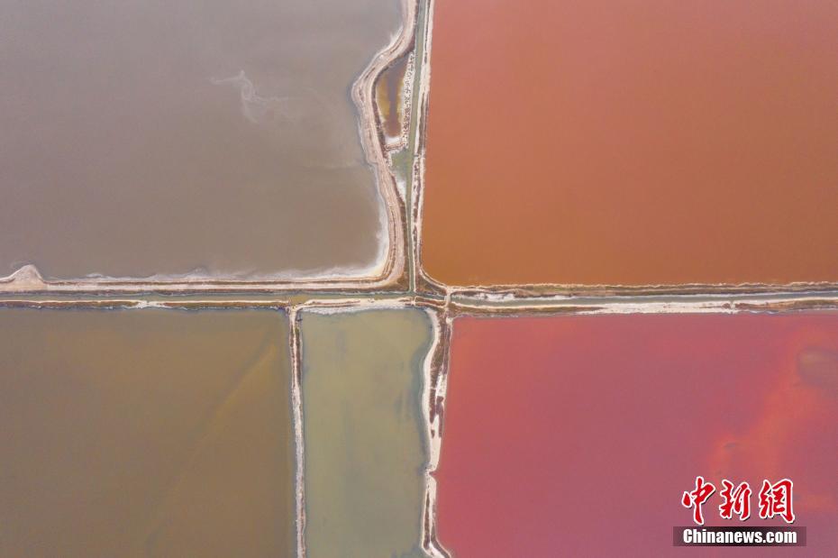 10月25日,山西运城,无人机航拍秋日盐湖,色彩绚丽美景独特。中新社记者 武俊杰 摄