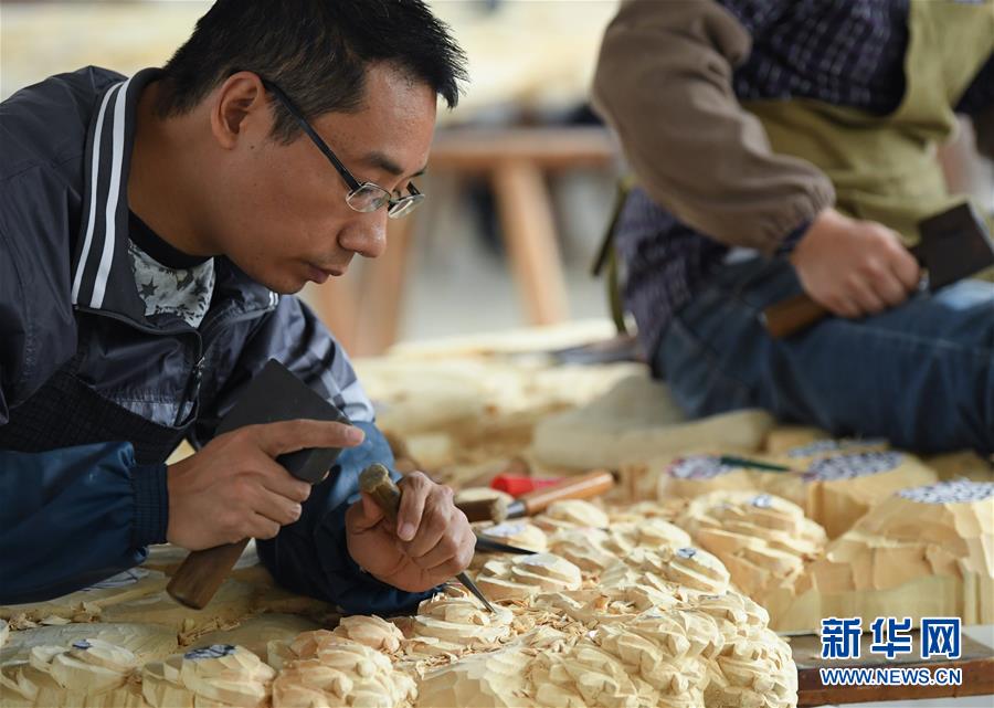 工作人员在亚太地区手工艺大师、中国工艺美术大师陆光正的创作室内雕刻作品(10月19日摄)。 新华社记者 翁忻旸 摄