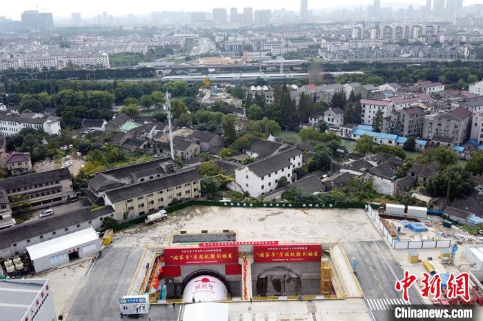 航拍苏州市桐泾路隧道盾构掘进现场。 泱波 摄