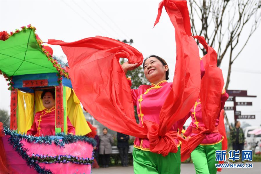 10月28日,在重庆市梁平区礼让镇,表演者在表演市级非遗项目“彩龙船”。 重庆市梁平区是中国民间文化艺术之乡,非遗文化底蕴浓厚,共有非物质文化遗产90项,其中包括梁山灯戏、梁平竹帘、梁平木版年画、梁平癞子锣鼓、梁平抬儿调等5项国家级非遗项目,以及礼让草把龙、梁平土法造纸技艺、铜乐锻造技艺等21项市级非遗项目。 新华社记者 唐奕 摄