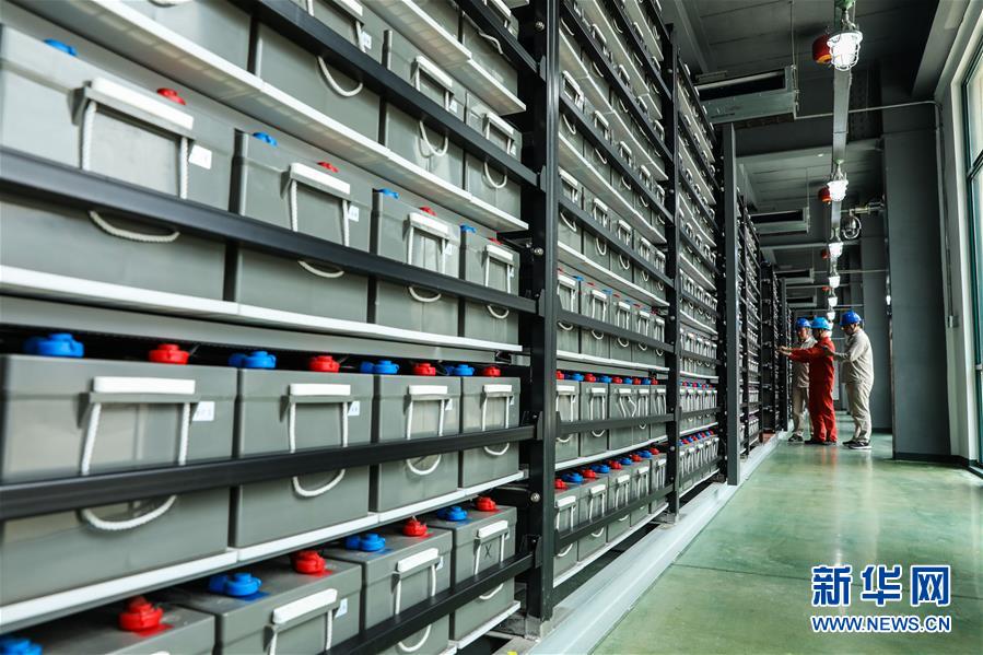 10月29日,在10千伏长兴雉城储能电站内,工作人员在蓄电池室内检测并网后单个蓄电池电压。 新华社记者 徐昱 摄