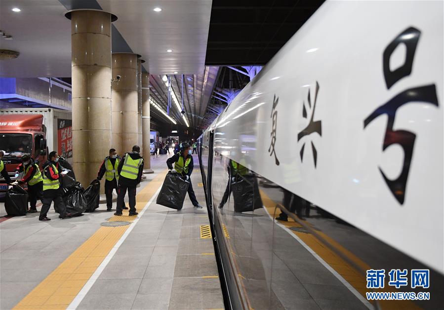 11月1日,工作人员在北京西站将货物装车。 当日,铁路“双11”电商黄金周运输服务启动,持续至11月20日。铁路部门充分发挥高铁成网运行和安全快捷等优势,优化运力供给,首次试点复兴号动车组整列装运快件,努力满足人民群众日益增长的物流服务需求。 新华社记者张晨霖摄