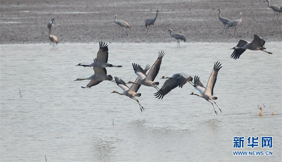 东洞庭湖国家级自然保护区里的灰鹤(10月30日摄)。新华社发(姚毅 摄)