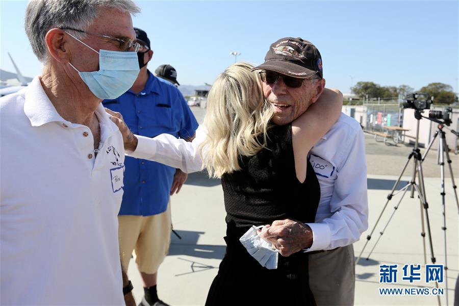 10月30日,在美国加利福尼亚州圣路易斯-奥比斯波机场,莫耶降落后受到亲友的欢迎。 76年前,哈里·莫耶驾驶P-40战机和“飞虎队”战友们一道在中国上空扫荡日寇飞机。30日,期颐之年的莫耶驾驶一架民用小型飞机在美国加利福尼亚州圣路易斯-奥比斯波机场再次冲上蓝天,庆祝自己的百岁生日。 新华社发