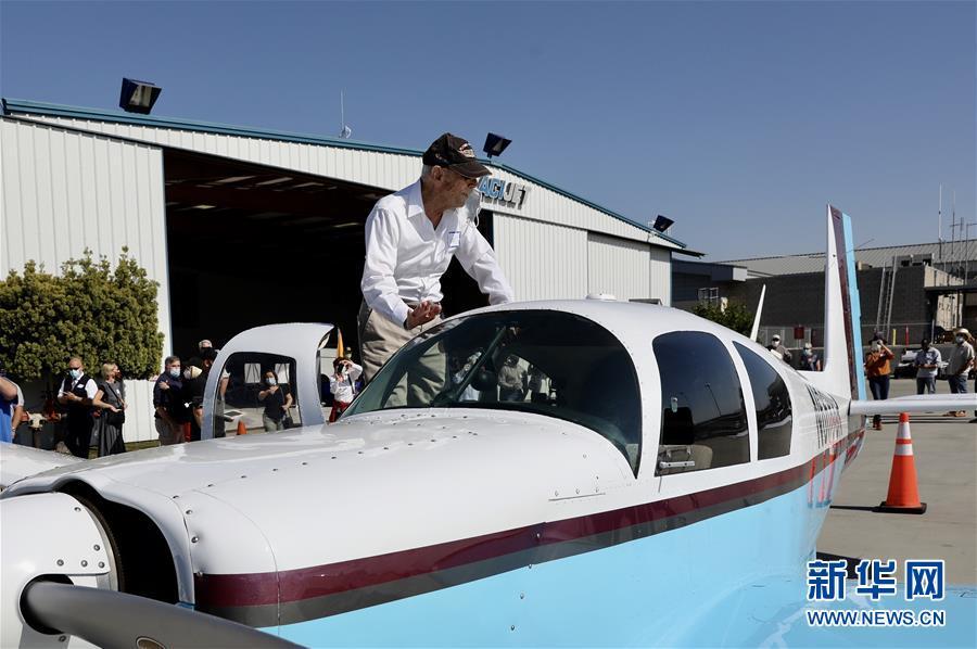 10月30日,在美国加利福尼亚州圣路易斯-奥比斯波机场,莫耶登上飞机准备起飞。 76年前,哈里·莫耶驾驶P-40战机和“飞虎队”战友们一道在中国上空扫荡日寇飞机。30日,期颐之年的莫耶驾驶一架民用小型飞机在美国加利福尼亚州圣路易斯-奥比斯波机场再次冲上蓝天,庆祝自己的百岁生日。 新华社发