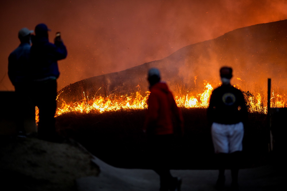 10月26日,人们在美国加利福尼亚州约巴林达观察山火。新华社/路透