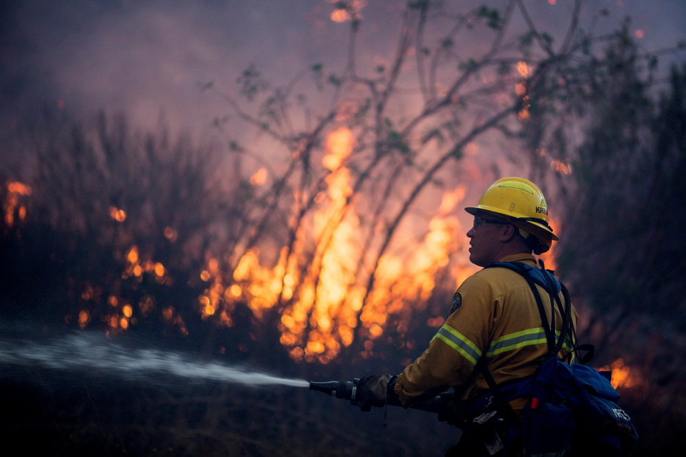10月26日,消防员在美国加利福尼亚州约巴林达灭火。新华社/路透