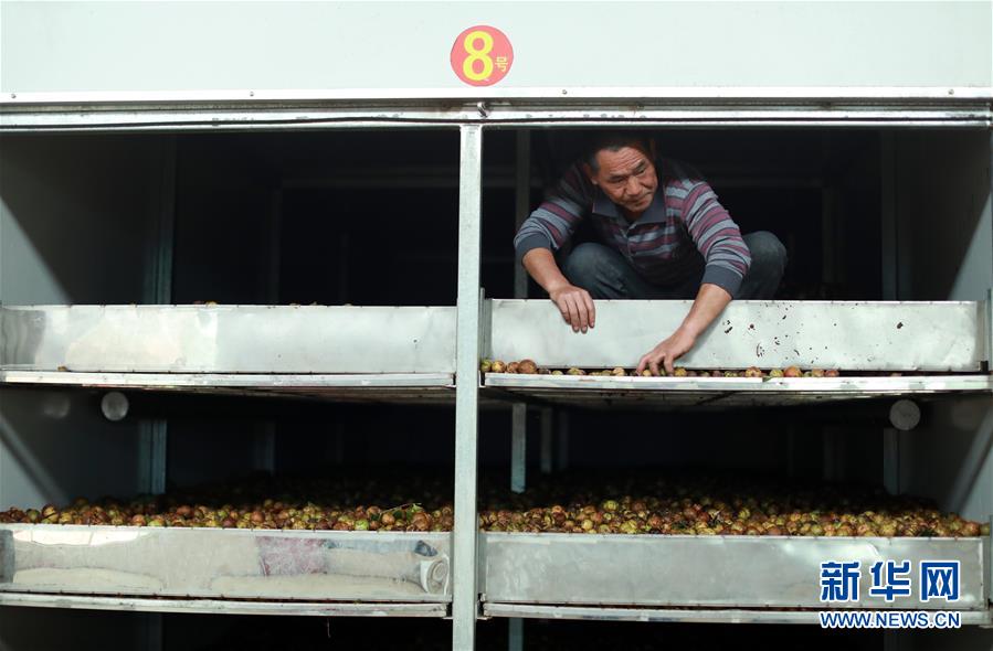 11月2日,在贵州省铜仁市玉屏侗族自治县一家油茶鲜果烘干厂,工人在烘干车间劳作。 近年来,“中国油茶之乡”贵州省铜仁市玉屏侗族自治县把油茶产业列为脱贫攻坚的支柱产业之一,采取“公司+农户”的运营模式,吸收贫困户参与到油茶鲜果烘干各个环节做工,助力贫困户增收。 新华社发(欧秀灯 摄)