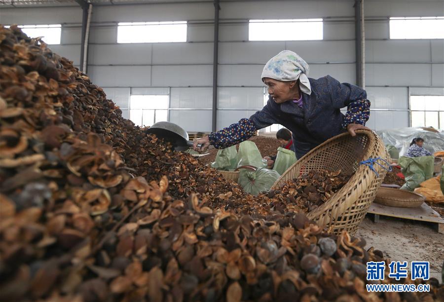 11月2日,在贵州省铜仁市玉屏侗族自治县一家油茶鲜果烘干厂,工人在选油茶籽。 近年来,“中国油茶之乡”贵州省铜仁市玉屏侗族自治县把油茶产业列为脱贫攻坚的支柱产业之一,采取“公司+农户”的运营模式,吸收贫困户参与到油茶鲜果烘干各个环节做工,助力贫困户增收。 新华社发(胡攀学 摄)