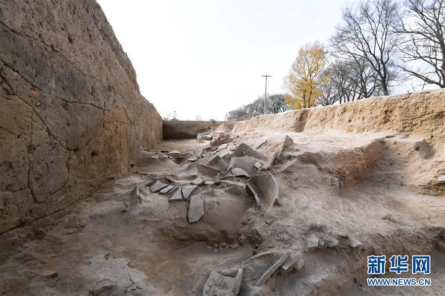 这是11月1日拍摄的呼和浩特市玉泉区沙梁子村中的西汉中晚期疑似大型粮仓建筑基址发掘现场中的瓦件。新华社记者 彭源 摄