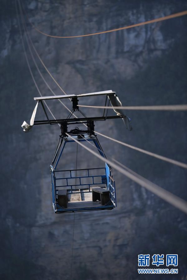 这是11月10日拍摄的湖北省鹤峰县铁炉白族乡渔山村村民曾经的出山工具——索道“铁篮子”。新华社发(杨顺丕 摄)