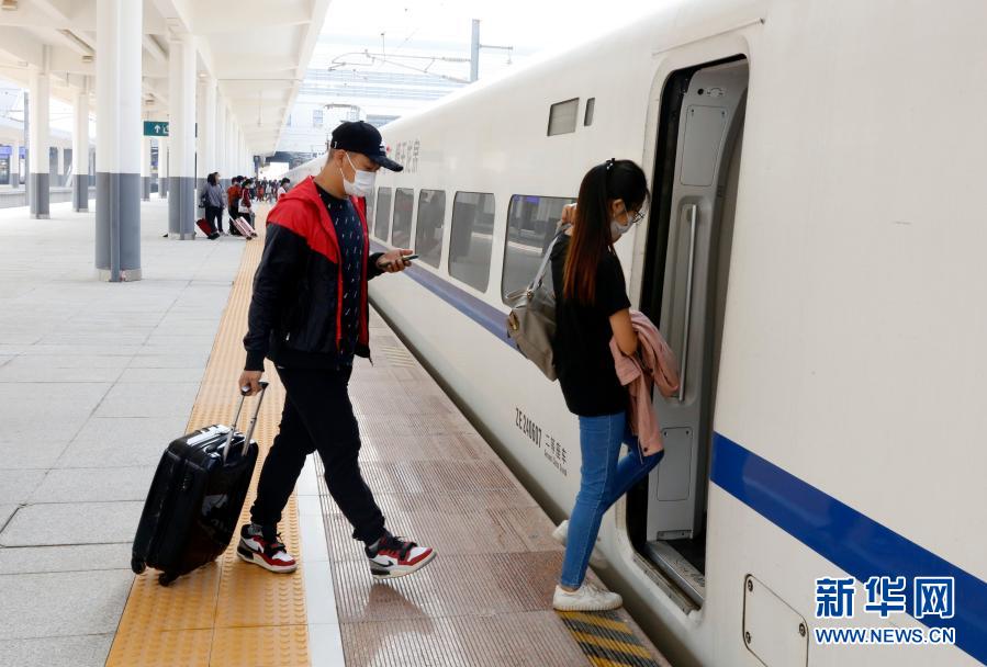 11月16日,旅客在珠西综合交通枢纽江门站上车。