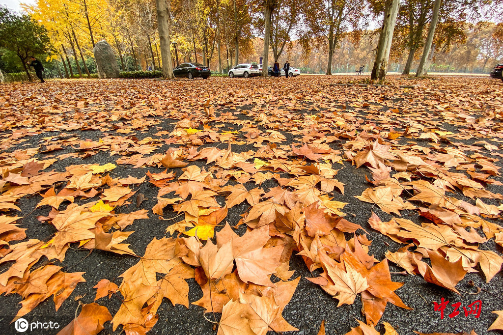 郑州千棵“最美法桐”落叶不扫似金色地毯
