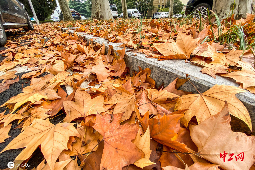 郑州千棵“最美法桐”落叶不扫似金色地毯
